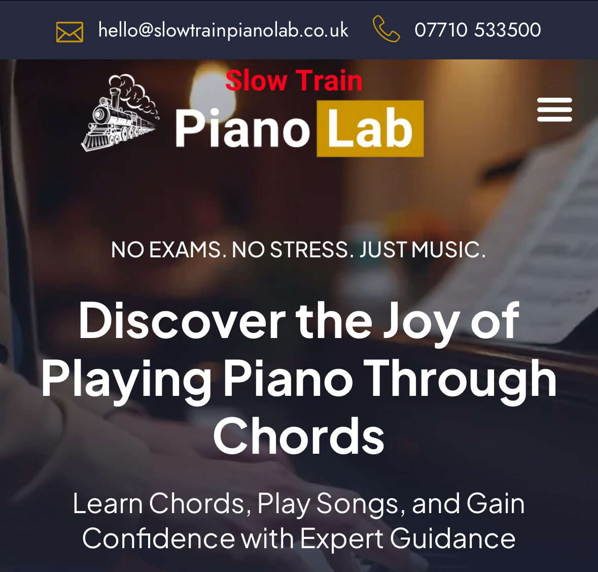 Slow Train Piano Lab is a creative learning music studio teaching students to play the piano using chords. No exams or stress, just come and learn to play the music you love. Sign up now.